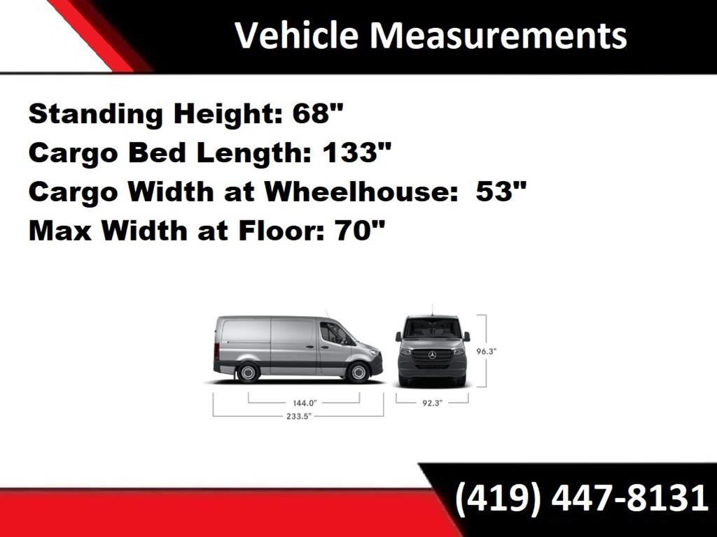 This Mercedes-Benz Sprinter 2500 has many features and is well equipped including, Collision Avoidance System, Drowsiness Alert, *Automatic Headlights, Apple CarPlay, Android Auto, Bluetooth Hands-Free, 16" x 6.5J Steel Wheels, 2 Additional Master Keys, 4-Wheel Disc Brakes, ABS brakes, Air Conditioning, ATTENTION ASSIST®, Blind Spot Assist, Driver Convenience Package, Driver Seat Base 12V Power Outlet, Dual front impact airbags, Dual front side impact airbags, Electrically Folding Exterior Mirrors, Electronic Stability Control, Emergency communication system, Exterior Parking Camera Rear, Front wheel independent suspension, Fully automatic headlights, High Roof, Hinged Lid for Left & Right Storage Compartments, Hinged Lid for Storage Compartment, Overhead airbag, Power door mirrors, Power steering, Power windows, Remote keyless entry, Traction control, Wood Floor w/6 D-Rings.